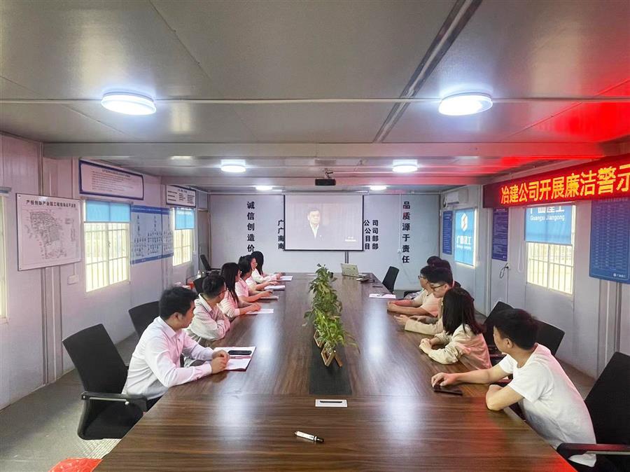 活動(dòng)中,宣講團(tuán)成員展示了愛國朗誦——《有為·無畏》;組織項(xiàng)目部員工觀看了廉潔警示教育片《高壓懲治腐敗》。