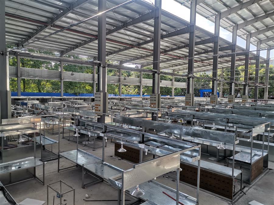 9月21日,在第十分公司承建的柳州市桂中商城改造過(guò)渡市場(chǎng)項(xiàng)目施工現(xiàn)場(chǎng),100多名施工人員堅(jiān)守崗位,趕工期,搶進(jìn)度。目前,該項(xiàng)目道路已全部硬化,鋼結(jié)構(gòu)安裝工程完成90%,門窗安裝完成60%,水電安裝完成90%。