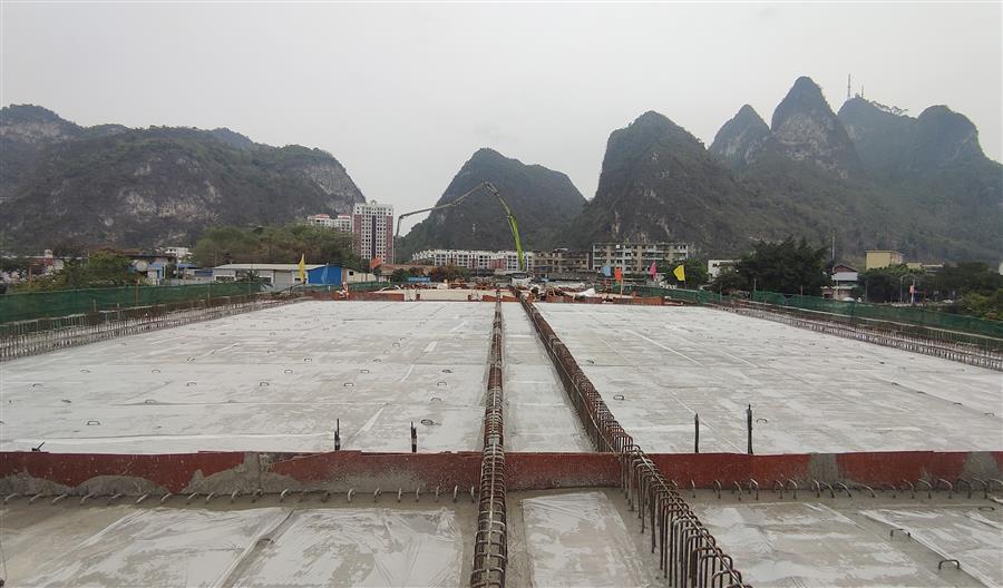 4月3日,冶建公司桂金分公司承建的河池市龍江六橋(輝樂橋)工程順利完成拱上箱梁結(jié)構(gòu)頂板混凝土澆筑施工任務,主體橋面實現(xiàn)全幅貫通。