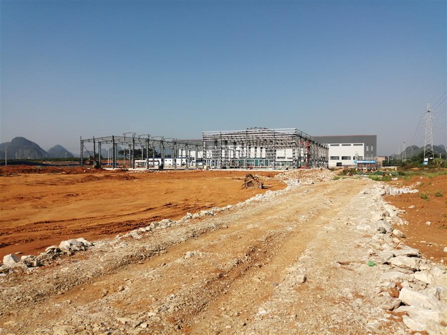 目前,該項(xiàng)目設(shè)備房消防水池外架搭設(shè)、模板安裝已完成,4號(hào)廠房側(cè)面檁條安裝完成,5號(hào)廠房屋面檁條安裝完成50%,6號(hào)樓基礎(chǔ)承臺(tái)已完成,4號(hào)樓地基處理注漿完成70%等。