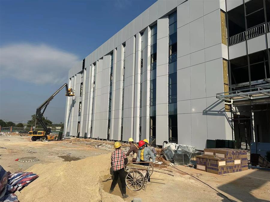 目前,項(xiàng)目1#聯(lián)合廠房外立面均已完成,室內(nèi)消防、鋼結(jié)構(gòu)等均已安裝完畢,暖通以及水電工程、室內(nèi)燈具、器具等正在安裝中。庫(kù)房、門衛(wèi)室主體結(jié)構(gòu)已完成、室內(nèi)燈具、器具等正在安裝中。