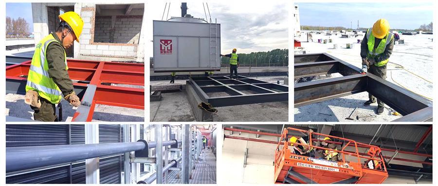 冷風(fēng)機(jī)設(shè)備入場后,項目部立即有序開展焊接吊風(fēng)機(jī)平臺工作,完成平臺焊接后,項目部合理安排進(jìn)度計劃,實施進(jìn)度管理。經(jīng)過項目部全體人員的連續(xù)奮戰(zhàn),項目4號庫12臺冷風(fēng)機(jī)已順利安裝到位,管道安裝完成80%;1號庫完成4臺蒸發(fā)式冷凝器安裝工作,下一步進(jìn)行管道安裝。