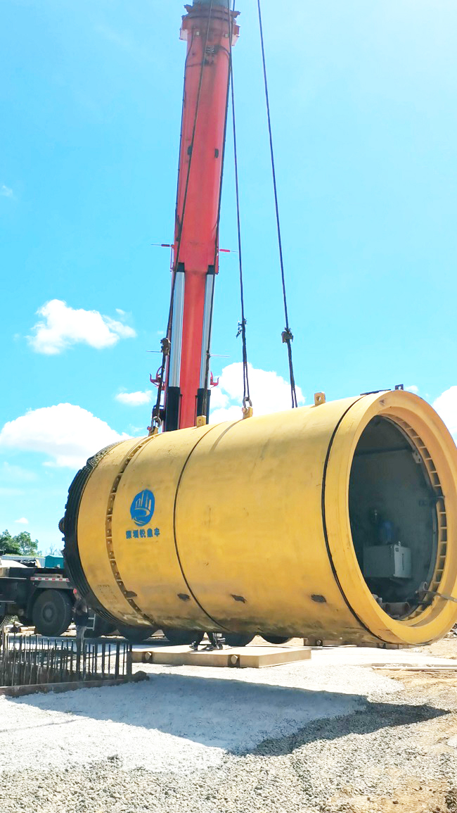 7月13日,冶建公司第三分公司承建的??谑杏^瀾湖北區(qū)區(qū)外排水工程(PG3 線)施工現(xiàn)場(chǎng),一臺(tái)長(zhǎng)6米、外徑3.6米,重95噸 的超徑巖石頂管掘進(jìn)機(jī)在起重機(jī)的牽引下精準(zhǔn)進(jìn)入到始發(fā)井的指定位置,標(biāo)志著項(xiàng)目建設(shè)邁入更為高效、有序的軌道。