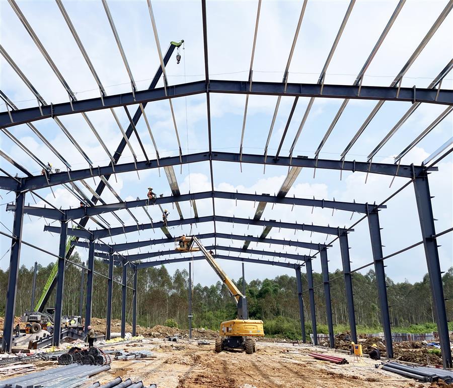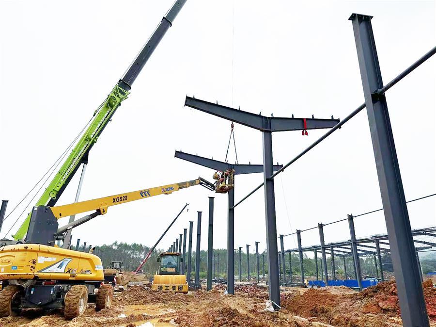 項目開工以來,為加快建設(shè)進度,項目部嚴格按照公司相關(guān)要求進行施工管理,克服重重困難,制定科學的施工組織計劃,由專員監(jiān)督指揮施工。該項目占地面積約2萬平方米,總建筑面積1.2萬平方米,主要建設(shè)一棟鋼架結(jié)構(gòu)標準廠房,配套建設(shè)道路、圍墻、綠化、電氣、消防及給排水等設(shè)施。目前已完成基礎(chǔ)承臺及地腳螺栓的預埋,鋼結(jié)構(gòu)安裝完成40%,配套建設(shè)施工內(nèi)容完成30%。