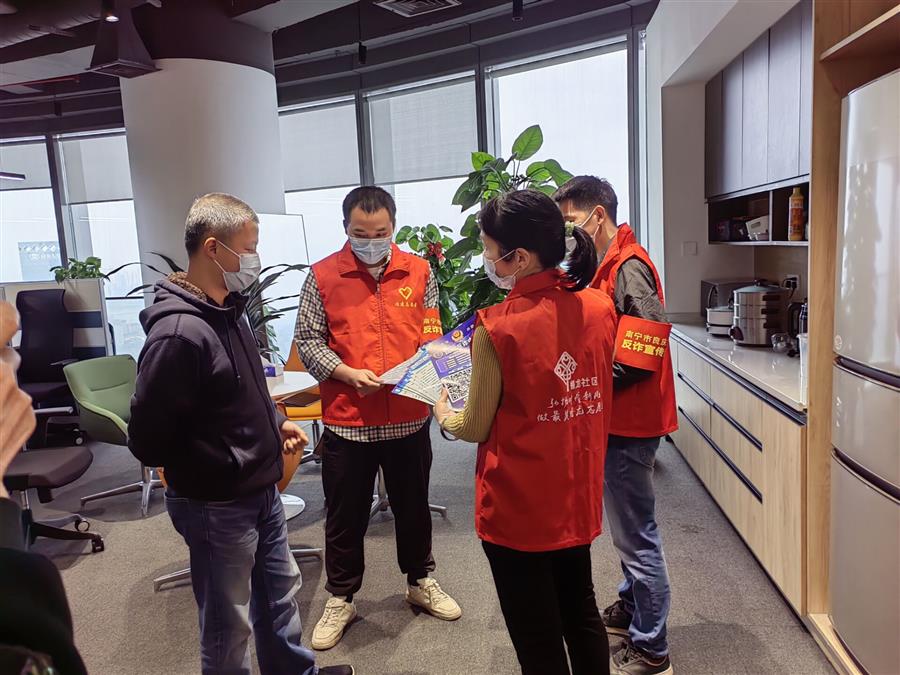 南寧片區(qū)各團(tuán)支部聯(lián)合開(kāi)展“弘揚(yáng)時(shí)代新風(fēng)尚 志愿服務(wù)我先行”反詐宣傳活動(dòng)。