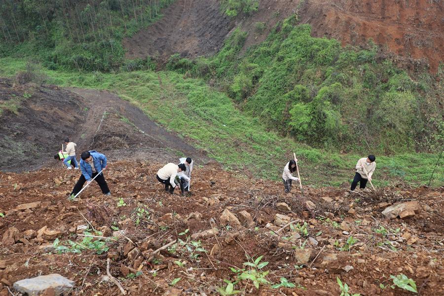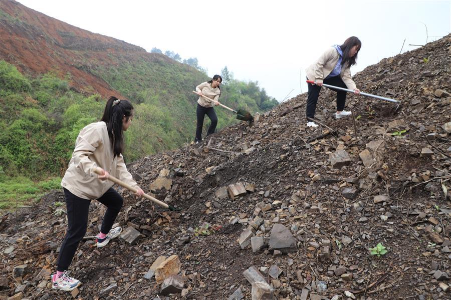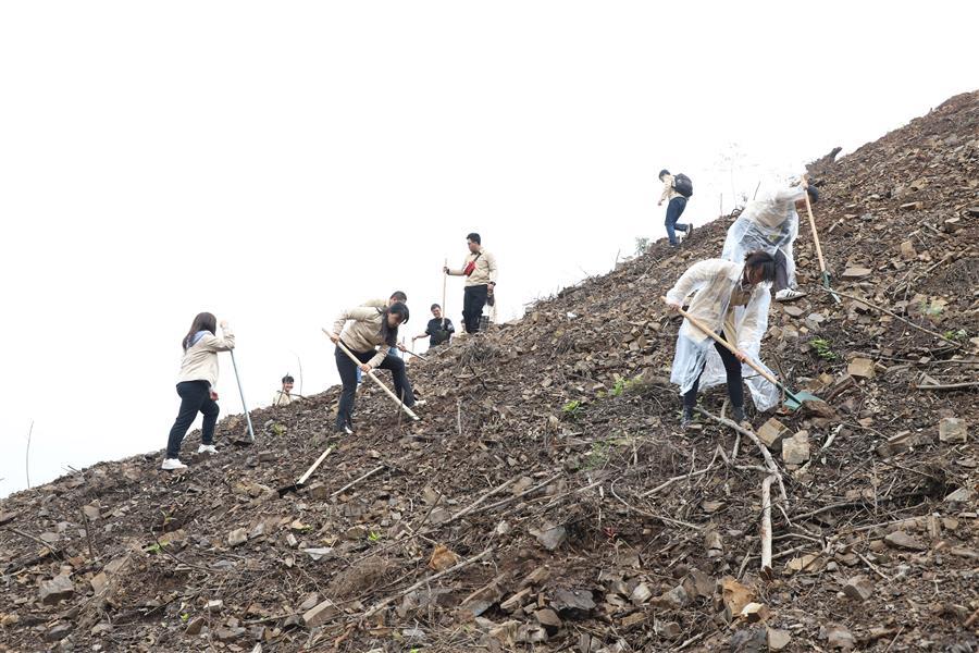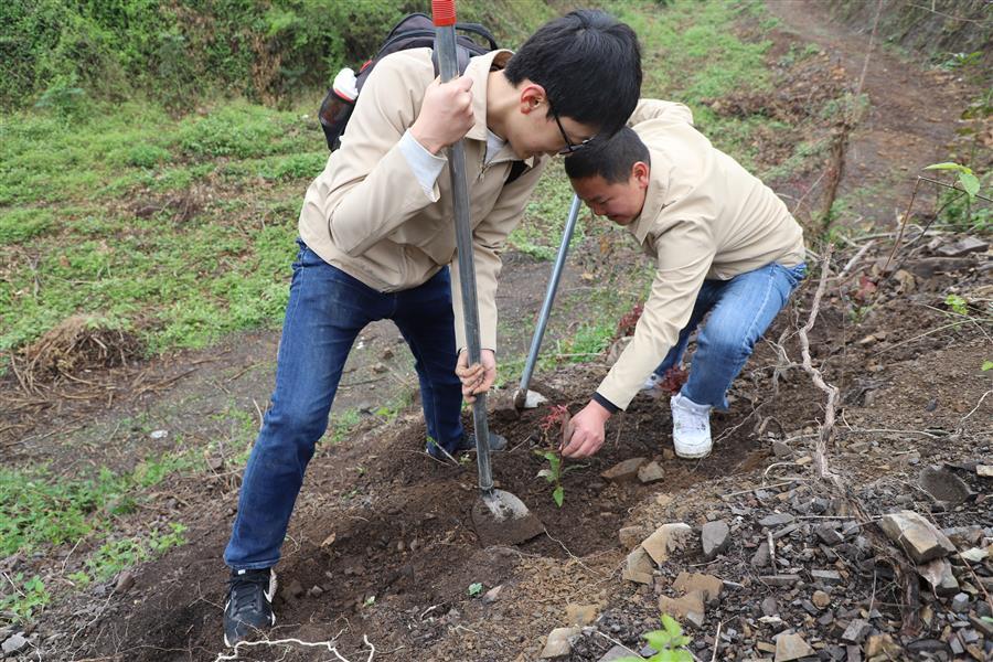 活動現(xiàn)場,青年志愿者分組分片區(qū)開展植樹活動。各小組團員青年分工協(xié)作、默契配合,鏟土挖坑、立苗填土,個個熱情高漲、干勁十足,活動現(xiàn)場氣氛熱烈。經過大家熱火朝天的忙碌,一排排新種樹苗有序“落根”,山坡上煥發(fā)出盎然生機。